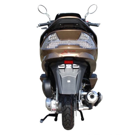 XTM-300TKB with two totally independent wheels in the front that tilt, that it can significantly more stable than any scooter. What's more, it can grasps the road, providing the rider with the most performance possible and with total safety.